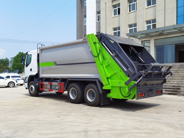 部分城市为减轻城市道路负荷,对大型压缩式垃圾车的总质量做出限制,要求总质量控制在40吨以内,因此,大方量的后双桥压缩垃圾车应运而生,取代了前四后八车型的市场份额。柳汽后双桥压缩式垃圾车,作为市政环卫、垃圾中转站、大型园区的旗舰级清运装备,以 “大功率强动力 + 超大容积高承载” 为核心优势,彻底解决高频次清运、长距离转运、复杂路况作业等行业痛点,实现效率与合规的双重突破,是规模化垃圾处理场景的首选车型。